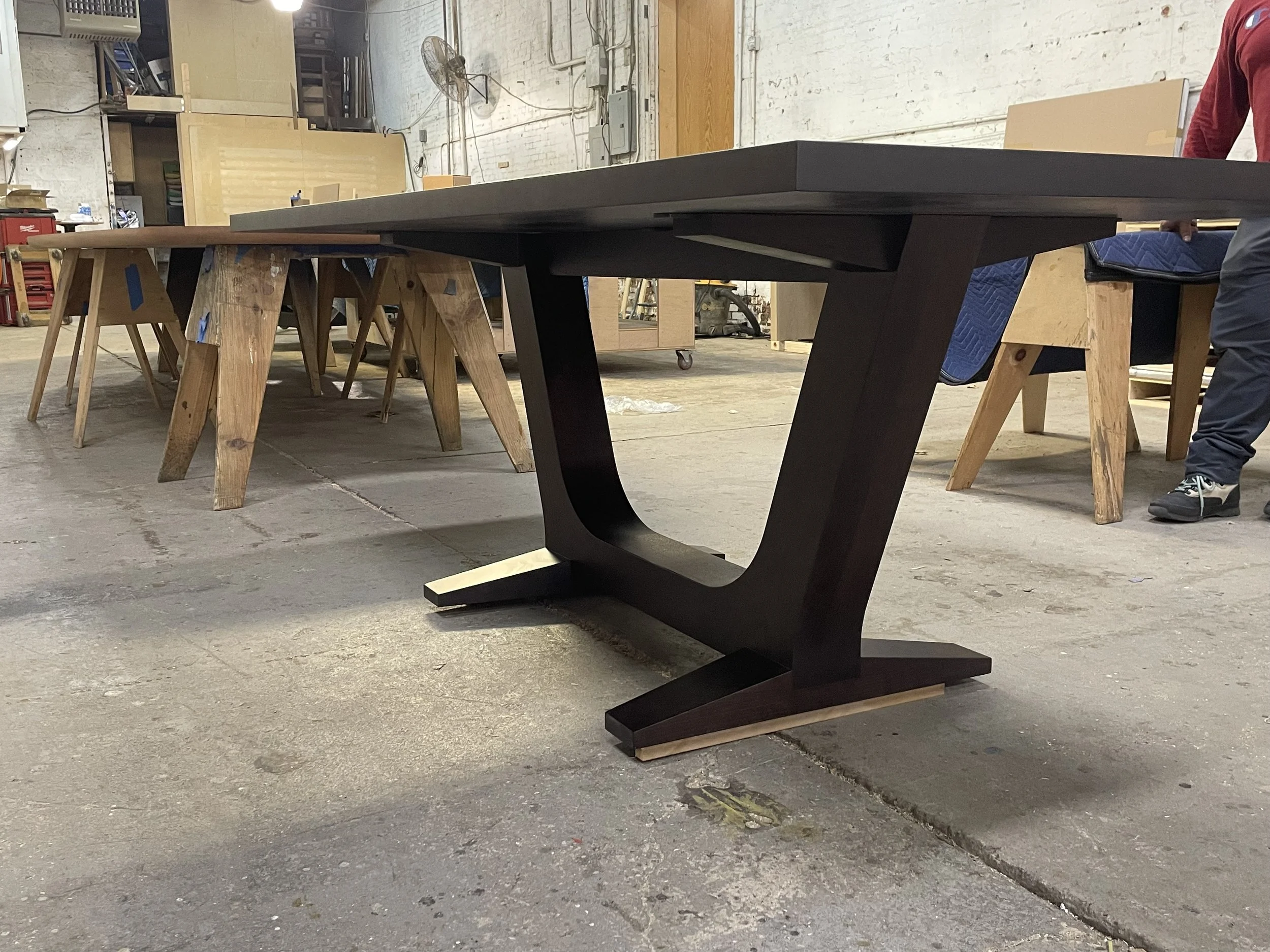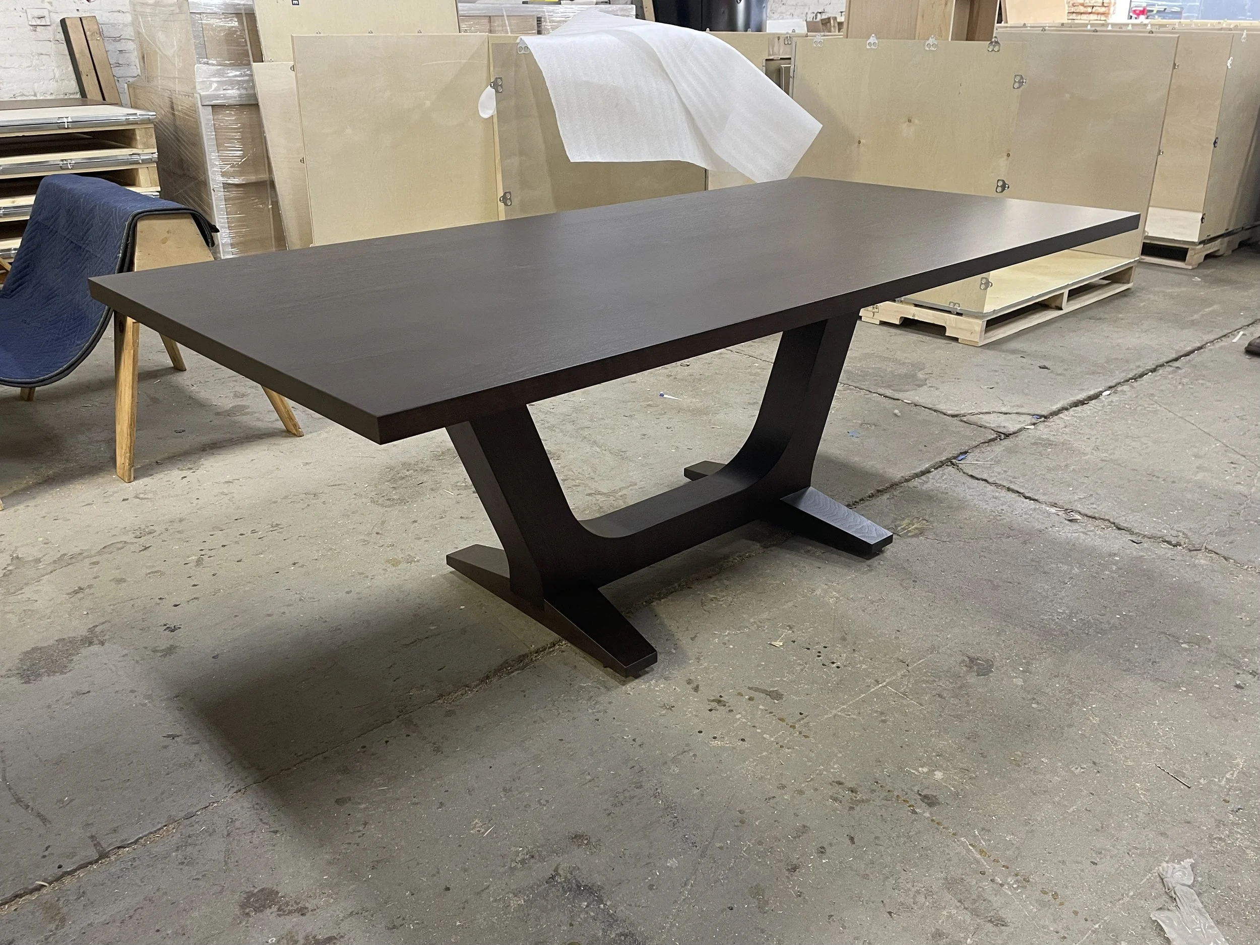 Beam TableInspired by design by George Nakashima. Top and base made from solid walnut.Ebonized walnut finished out-of-house.